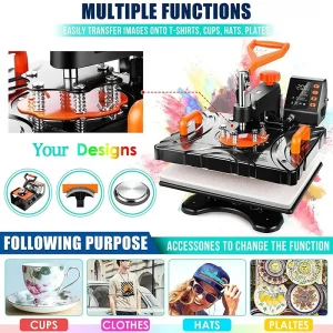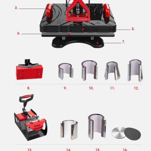 Aceasta presa termica 11 in 1 include o varietate de accesorii: