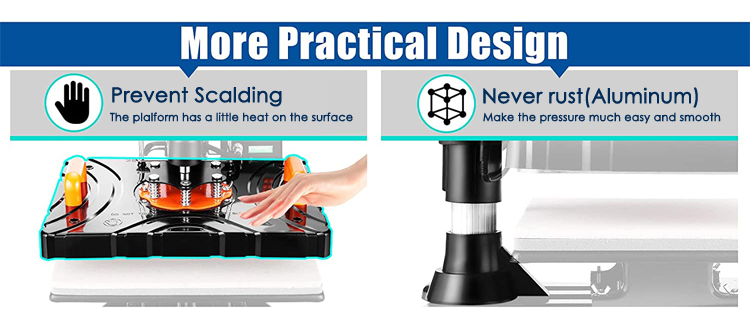 Cea mai recenta tehnologie de izolare cu doua straturi asigura temperatura suprafetei presei de tricouri de numai aproximativ 50 ℃ atunci cand temperatura de lucru atinge 200 ℃.